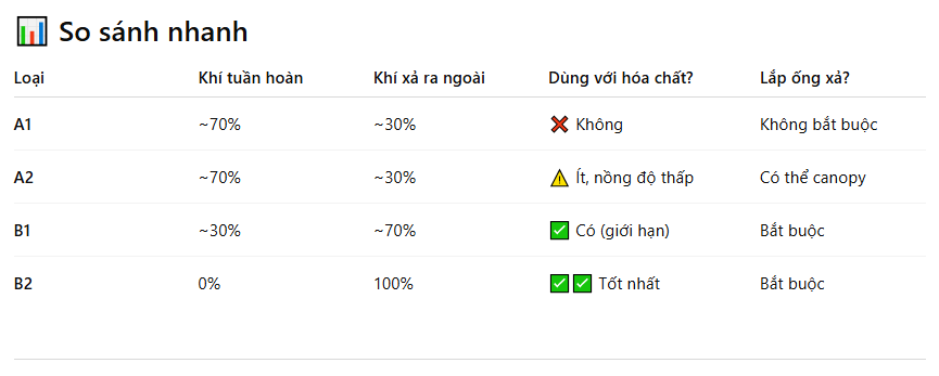 Class II Type A2 (Phổ biến nhất tại Việt Nam)
